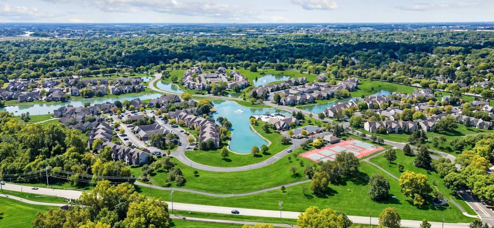 오하이오주 더블린에 위치한 애셔튼 오브 더블린(Asherton of Dublin) 단지 내에 아름다운 호수가 있어 평화로운 분위기를 자아내며, 산책로나 휴식 공간이 잘 마련되어 있다.